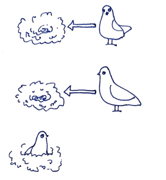 Now we have enough knowledge to match up pigeons and nests – the basic idea being simply to have the same number of pigeons as we have nests. If we suppose that we have a set of distinct pigeons and a set of distinct nests, then we would know that these two sets have the same size if there is a way to place one – and only one – pigeon into each nest.