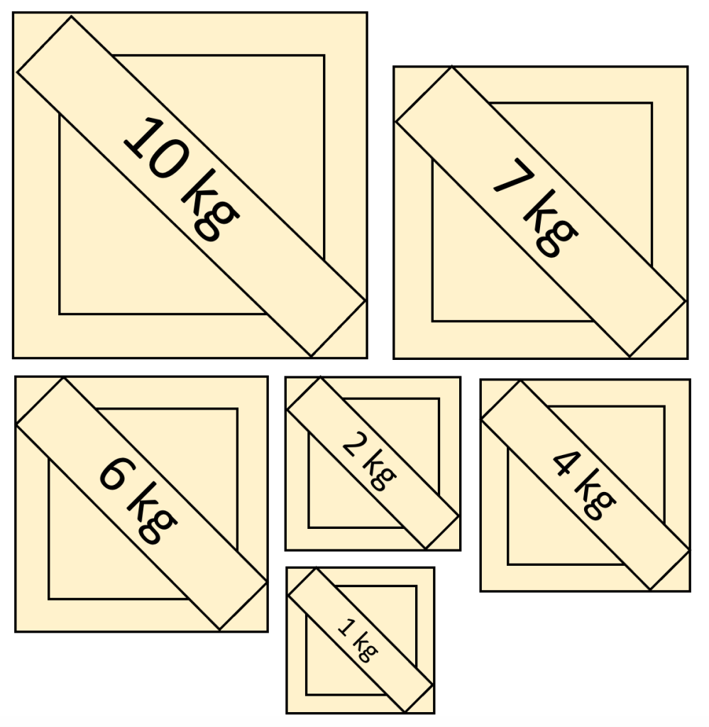 We’ll have to figure out how to split these crates into two piles, such that the sum of weights in the two piles are equal.