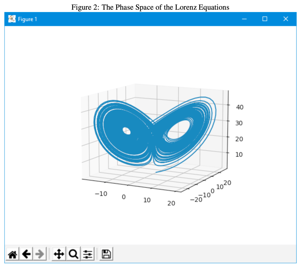 Now that we have explored a non-chaotic phase space attractor, we can contrast this with the phase space attractor of a chaotic system of equations. Take the “Lorenz Equations”, a set of non-linear differential equations formulated by Edward Lorenz (1917-2008) as follows: