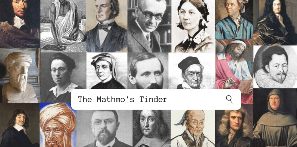 September 20, 2021December 15, 2025 tomrocksmaths The Mathmo’s Tinder Find your perfect topic in maths using this fantastic tool from TRM intern Khue Phan based on the Tinder dating app. Try it out for yourself by clicking on the image below! Share this: Click to share on X (Opens in new window) X Click to share on Facebook (Opens in new window) Facebook Click to share on Reddit (Opens in new window) Reddit Click to share on LinkedIn (Opens in new window) LinkedIn Click to email a link to a friend (Opens in new window) Email Click to share on Pinterest (Opens in new window) Pinterest Click to share on WhatsApp (Opens in new window) WhatsApp Click to share on Tumblr (Opens in new window) Tumblr Like Loading... Related
