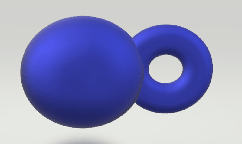 Following this method, the effect of attaching a torus to a sphere looks like this: