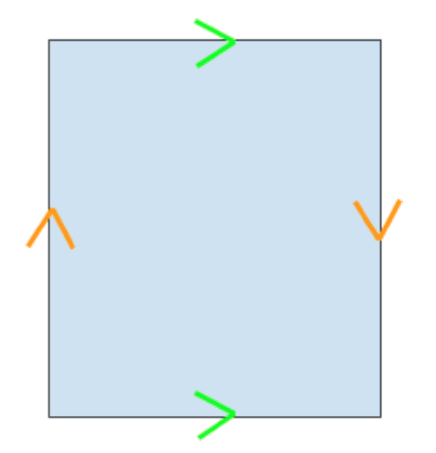 *turns out this is a Torus as well, the adjacent red arrows pointing in opposite directions cancel out, to give us a familiar diagram. If we flip the direction of one of the red arrows, we get a cross cap.