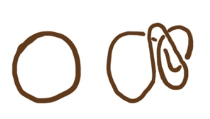 The simplest knot possible is called the unknot, and it is essentially just a circle. Our babka representation has some turns in it to create a swirl, but we can easily unwind them to get a simple loop, shown by the diagram.
