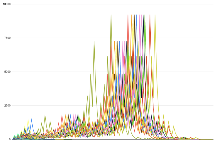 The graph demonstrates that there is seemingly no pattern to the trajectories of flight numbers, besides all eventually transforming into the number one. However, manipulation of this data does yield useful results.