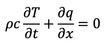 Further, let q(x,t) be the heat flux (the flow of heat energy) in the positive x direction (downward) at depth x and time t. (So -q(x,t) would be the heat flux in the negative x direction at the same point.)