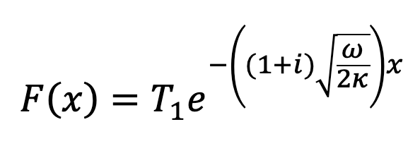 Here ω represents the frequency of the seasonal temperature oscillations, which will be 2π/1 year = 2.0 x 10-7 s-1. T0 is a constant average for the temperature to oscillate around. As a constant, it vanishes in the differentiation.