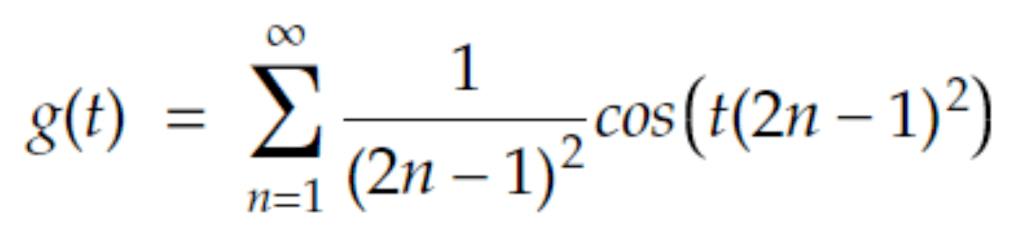 One mathematician who made great use of the sinusoidal functions is Joseph Fourier. In the early 1800s Joseph Fourier realised the limitless possibilities of adding these waves together as a way of approximating and modelling other, more complex periodic functions. He invented the Fourier series which in essence describes a way of representing a complex periodic function, like the human voice or the chime of a bell, as the sum of infinitely may sinusoids with differing amplitudes and frequencies. The equation is as follows:
