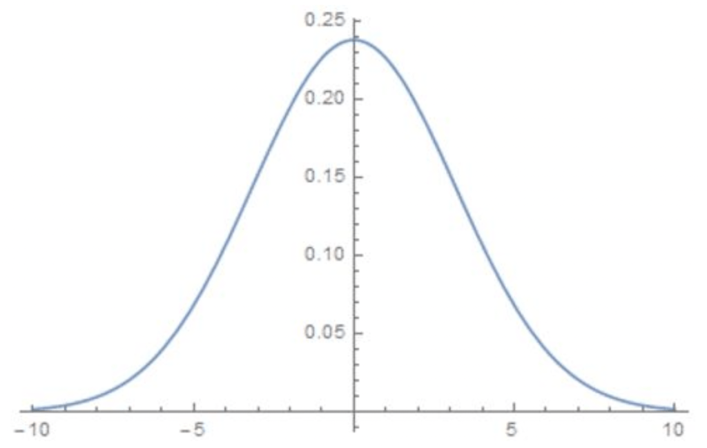 The reason the transform doesn’t look like this is because the Fourier transform outputs a continuous function, so the graph above, which is discrete, couldn’t be outputted by a Fourier transformation (although a Fourier series could be used to approximate this!). A curious by-product of this approach means that values around the maximums on the transformation can be used to approximate the original function. However, this also introduces an uncertainty in the frequency and values around the actual frequency can be used to approximate the original function. This can be used to explain Heisenberg’s Uncertainty Principle. This is a principle that forms the backbone of quantum mechanics and simply put states that the more accurately you know a particle’s position the less accurately you know its momentum. When this idea is married with the fact that particles have wave like properties in quantum mechanics we can apply the Fourier transform to these particles. Take any particle and let its position be defined by the function p(x). Now we have a position value we need to be able to also model its momentum. How do we do this? You guessed it, we use the Fourier transformation of p(x). Think of what was once frequency to now be momentum. Say we have a particle and we are able to accurately measure it’s position, reducing the uncertainty in this measurement, we could show the position of the particle as such: