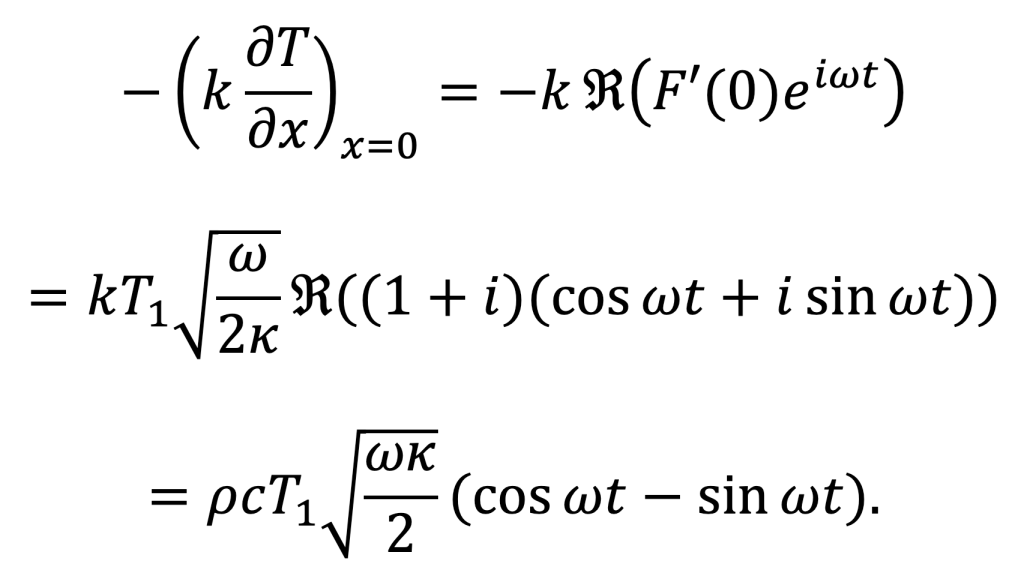 In order to check this, we need to find the maximum and minimum temperatures, and then average them. For that we must consider the heat flux through the surface. The analysis that below closely follows Dr. James Shifflett’s 2011 analysis of Mercurian subsurface temperatures; but rephrased in the language used above.