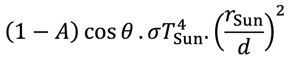 θ is the latitude. We count only the normal component of the Sun’s rays, hence the cosine.