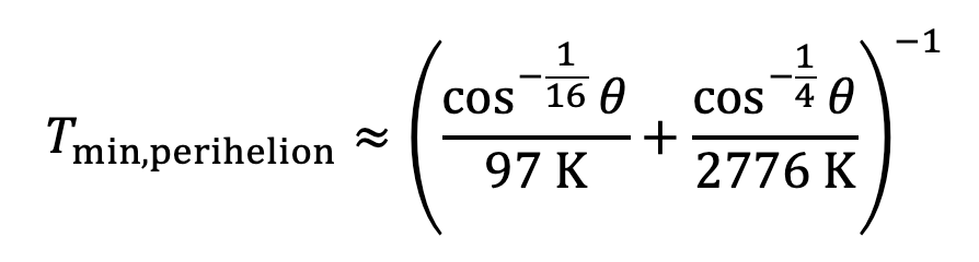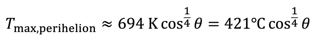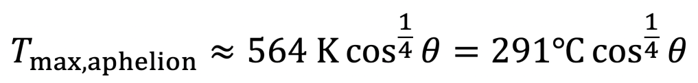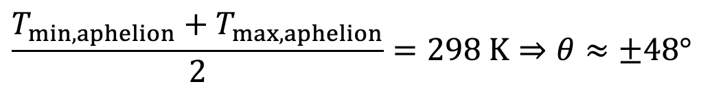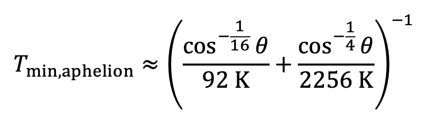 which is 94 K (−179°C) on the equator (θ = 0°). At aphelion, we have
