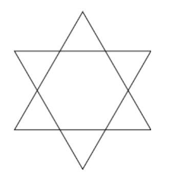 Not all stellations create a single polygon. Nonadjacent sides of a hexagon are at 60ยฐ angles, which are the angles between two sides of an equilateral triangle. So if we insist on stellating the hexagon, we donโt get a new polygon. We get the Star of David: it splits into two triangular circuits.