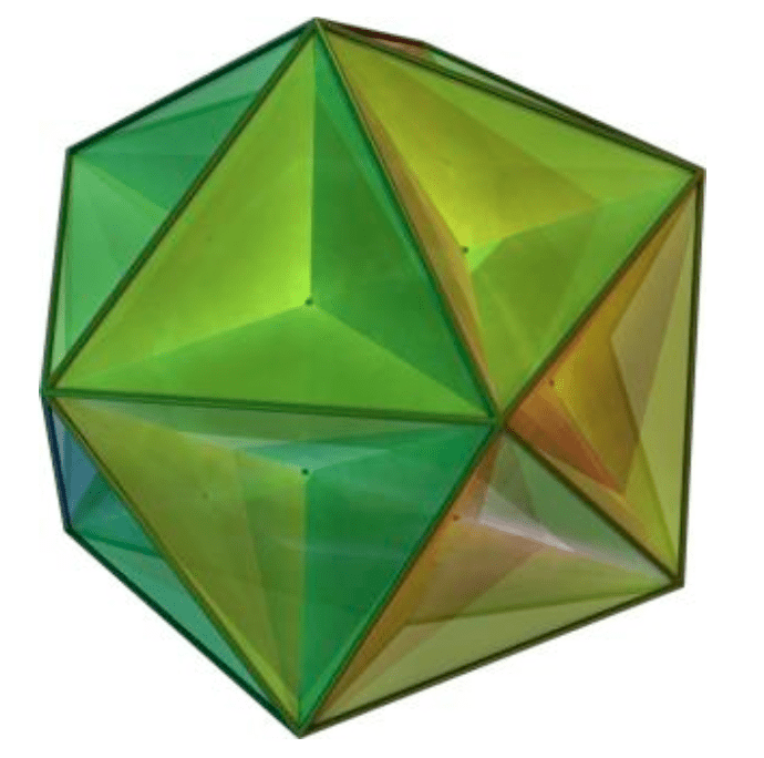 And from the nine regular polyhedra, we could likewise extend this discussion to four dimensions, giving no fewer than sixteen regular figures โ six convex and ten starry! Although regular stars do not exist in dimensions higher than four, there is no shortage of less regular ones in any dimension.