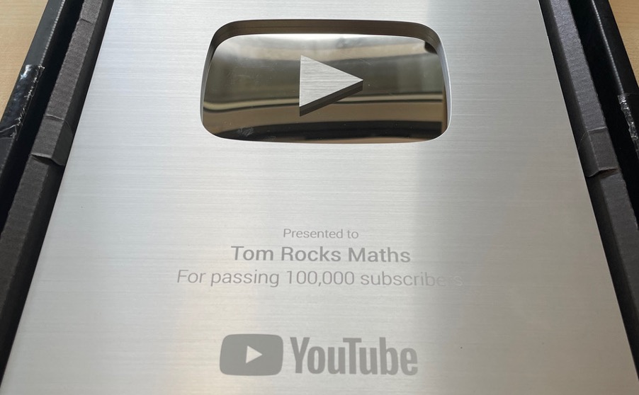 Another personal milestone was reached in May as I passed 100,000 subscribers to the ‘Tom Rocks Maths’ YouTube channel. This is deemed large enough for YouTube to send me a congratulatory letter and an award called the ‘silver play button’ to commemorate the achievement. Next up is a ‘gold play button’ and the small matter of 1 million subscribers – wish me luck!