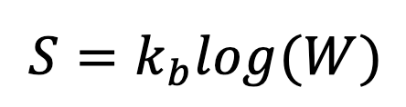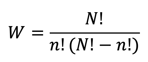Where S is the entropy of the system, kb is the Boltzmann constant and W is the number of configurations the system can adopt, which is given by the Maths of combinatorics as: